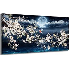 Cherry Blossom Trees Orchard Lanterns Digital Art Print On Canvas Wall Art Ebay
